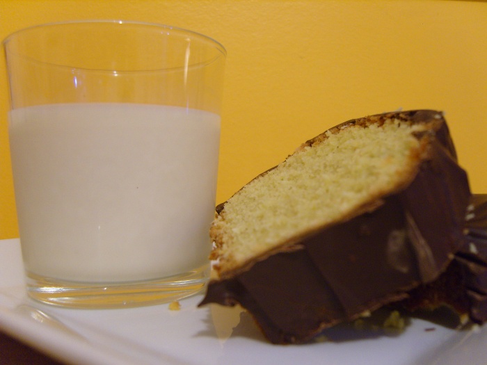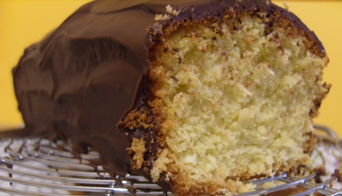 La recette est issue du livre Pâtisserie maison, les 200 recettes incontournables édité chez Marabout. Rien de bien difficile et elle est même assez rapide. Pour dire, j’ai réussi à préparer ce cake pendant qu’un risotto mijotait sur la gazinière .. ! Je dirais même que c’est encore plus simple qu’un gâteau au yaourt (pas de pot à nettoyer, c’est encore mieux !) C’est juste plus long après l’avoir recouvert du chocolat puisqu’il faudra dès lors attendre qu’il fige mais rien n’empêche de le préparer la veille.