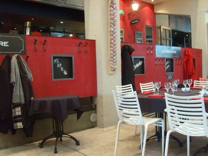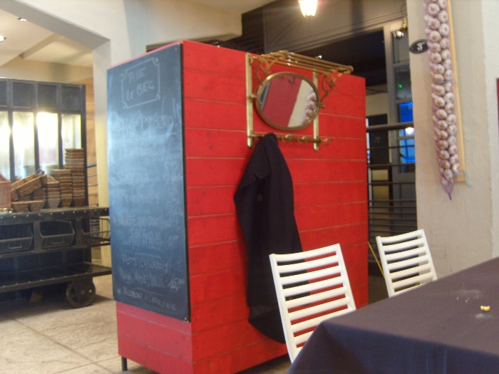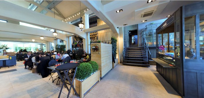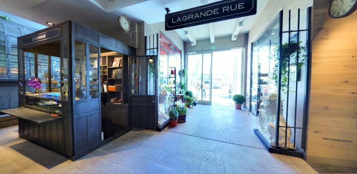 Car en somme c’est un endroit conceptuel ouvert jusqu’à 22h30 et offrant plusieurs services: cave, boulangerie, fleuriste, l’on peut même s’offrir quelques objets de vaisselle mis à la vente dans des cageots près de l’entrée. D’où le nom « Le Rue » qui est là pour symboliser cette envie de Nicolas Le Bec de proposer à ses clients une brasserie au milieu de plusieurs enseignes. Créer l’illusion de se restaurer aussi simplement que si l’on était aux Halles de Lyon.
