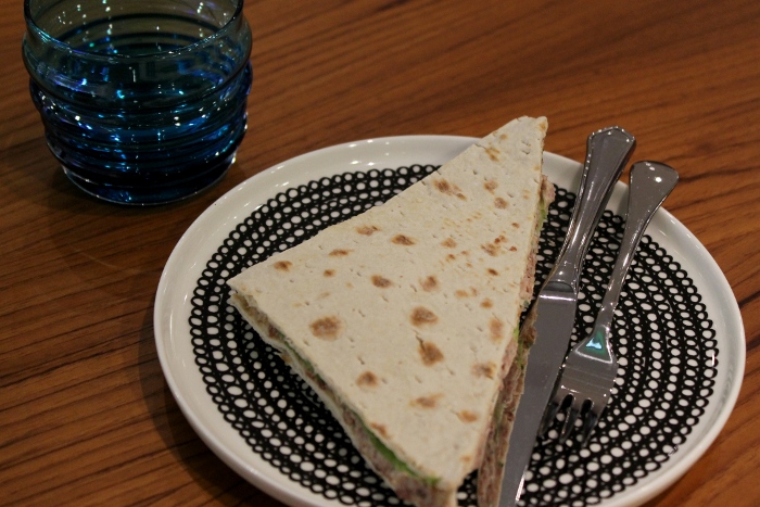 Je vous ai dit que l’eau est servie dans un verre Marimekko issu de la nouvelle collection? Ben voilà. Dès l’arrivée de Cyp, on a quand même consommé du miam marikkofinlandais et c’était bon. En plus.