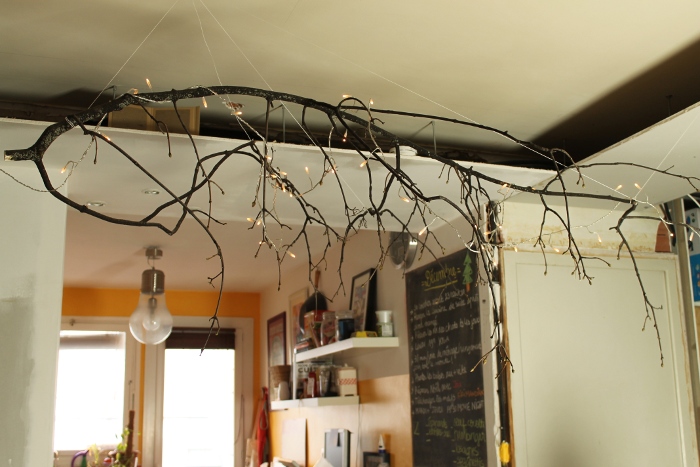 Aujourd’hui, le point est que j’adore cette branche mais je ne sais pas quoi faire. La laisser? L’enlever ? Car même si je l’adore et que je trouve le procédé ultra poétique, Noël passé, ça fait toujours un peu bizarre .. Vous feriez quoi à ma place ?