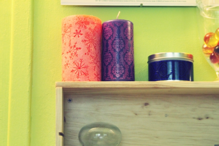| bougies: Alinéa, Ikea, Anthropologie | bonbonnière: Maisons du monde | pot sels de bain: Emmaüs| sels de bain: Nature&Découvertes | affiche: Allposters.fr |