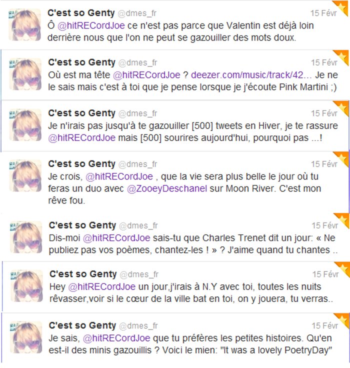 Pour être honnête avec vous, ce fextravrier est tellement lol que je ne sais même pas par où commencer… J’avais envie de twitter de la poésie à Bradley Cooper le lendemain de la Saint-Valentin, sauf que ce rigolo de beau gosse n’a pas de compte Twitter ! Alors je me suis rabattue sur deux autres beaux gosses que je suis: Jesse Williams aka le Dr Avery dans Grey’s Anatomy et Joseph Gordon-Levitt aka l’acteur-chanteur le plus hype/vintage qui existe et accessoirement super pote de Zooey Deschanel, la chanteuse de She & Him ..
