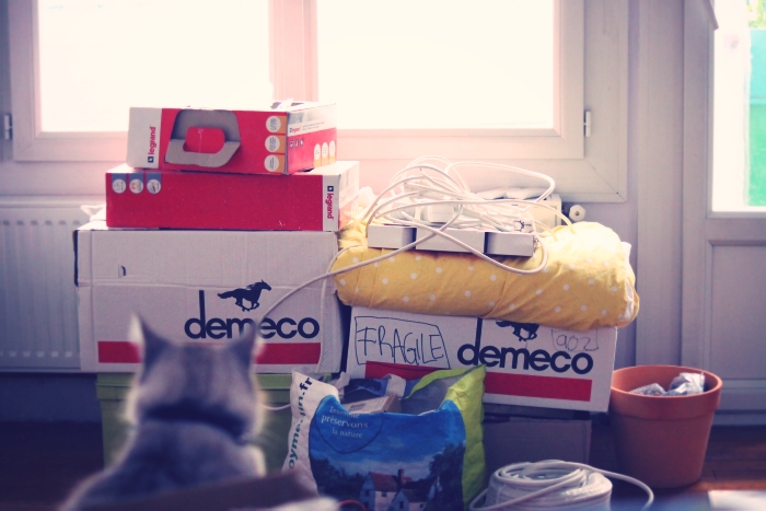 Bref, tout ça pour vous dire que je suis toujours en vie (je survis péniblement sous une montagne de cartons qui vient de s’effondrer sur moi…. naaaan, je blague). Les chats ne sont pas d’une grande aide, le soleil et les températures positives largement plus séduisants, mon pc assez récalcitrant (va falloir qu’il finisse par comprendre que l’hibernation n’a que trop duré !).