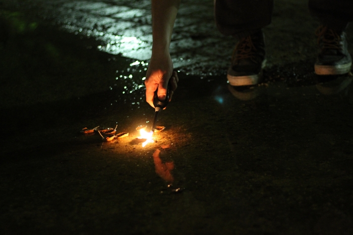 Quelques heures auparavant il avait plu; les flaques étaient donc au rendez-vous pour faire flotter ces petites embarcations enflammées. C’était joli, c’était poétique à souhait. C’était une très belle soirée, bercée de nouveaux espoirs, d’une nouvelle page à écrire pour chaque jour à venir.