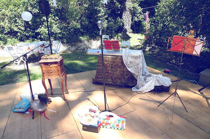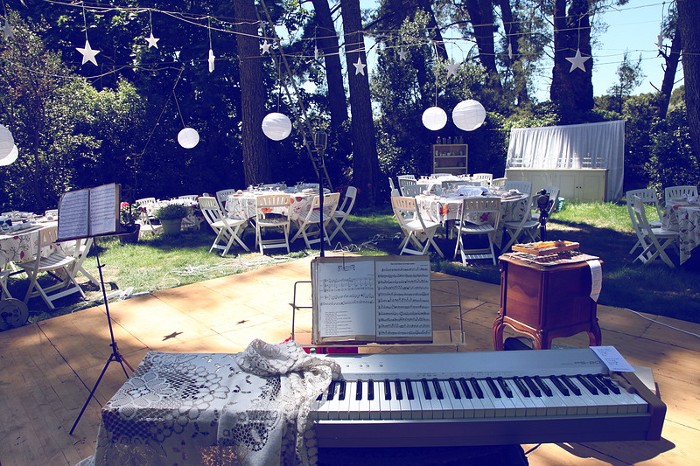 J’avais l’envie de faire croire aux invités que toute la décoration était là par hasard, comme si les Robinsons venaient de débarquer dans ce jardin enchanté et avaient pris possession des lieux.. Une sorte de fausse-simplicité.(alors qu’en réalité tout a été pensé et placé jusqu’au moindre détail …)