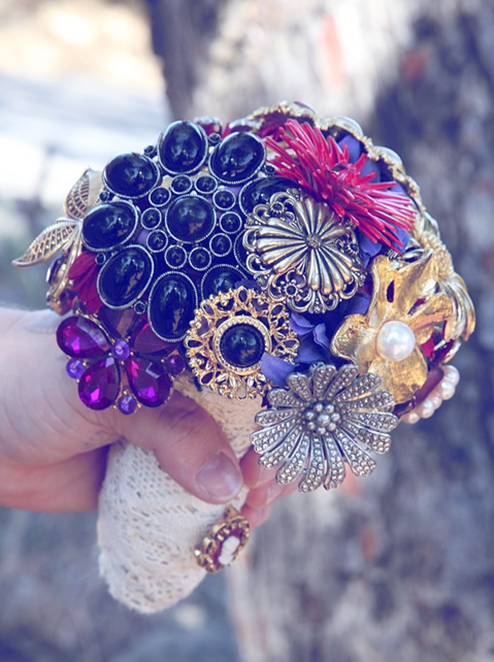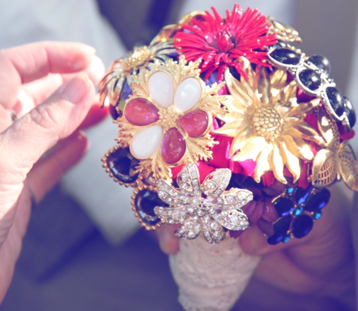 Et puis je suis tombée sur un article parlant des bouquets de broches et là, par contre, j’ai tout de suite accroché à cette idée fabuleuse ! Ce que j’aurais bien aimé, c’est de pouvoir faire le mien avec des broches venant de la famille mais c’était vachement compliqué. De plus, je m’y suis quand même mise un mois avant la date-clé alors il a fallu trouver une autre solution.