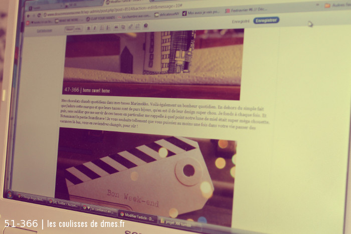 Allez, sur ce, je vous mets les photos des deux dernières semaines de mon 366. (C’est toujours ça de gagné.) Et sinon, ça va bien, vous ??