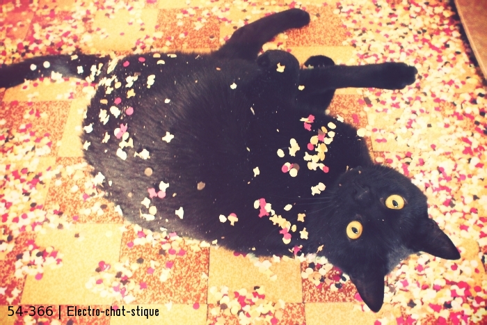Rahlala Petit Chat Alfred ! Au début, je n’avais pas prévu d’en faire la photo du jour pour la simple et bonne raison que j’étais en train de me préparer un chocolat chaud et puis dès que la sonnerie a retenti, il est venu en courant me rendre visite dans la cuisine, et a commencé à se rouler dans les confettis. La suite, vous la connaissez: ce chat est dans mon coeur !