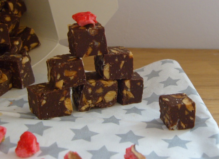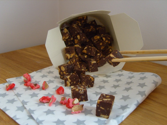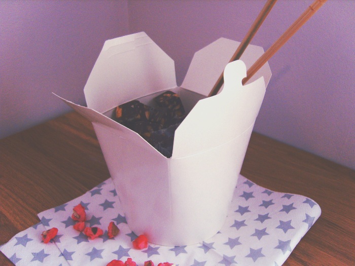 Passé ce laps de temps, on découpe en cubes selon ses envies et on peut même s’amuser à faire des pyramides ! Et sinon, pour les plus romantiques, on achète des petites boîtes chez Milk and Paper, on décore avec des baguettes, une serviette, des jolis mots et on emballe le tout. Simple et Joli.