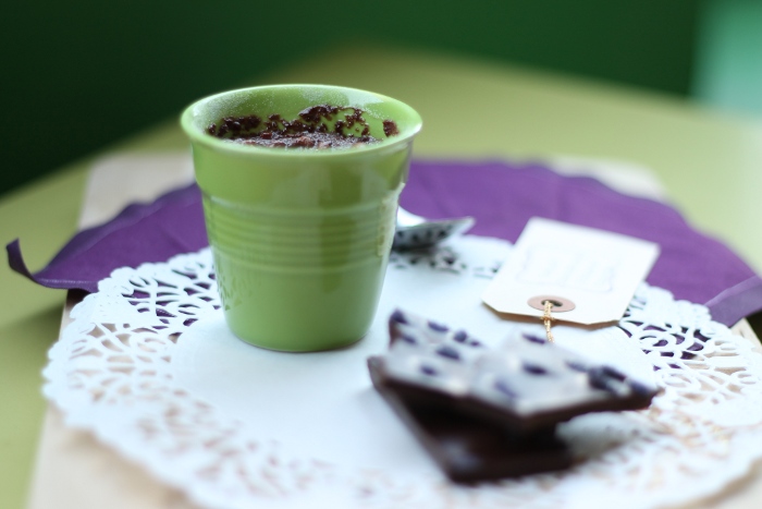 Finalement, ma grande difficulté a été d’essayer de détourner la Mousse de son étiquette donc trouver une manière de la mettre en scène autrement. Je ne sais pas si c’est réussi mais au moins, j’ai fini par trouver une façon de déguster joliment ce dessert sans être écœuré car ainsi nous avons droit à de toutes petites quantités et c’est appréciable.