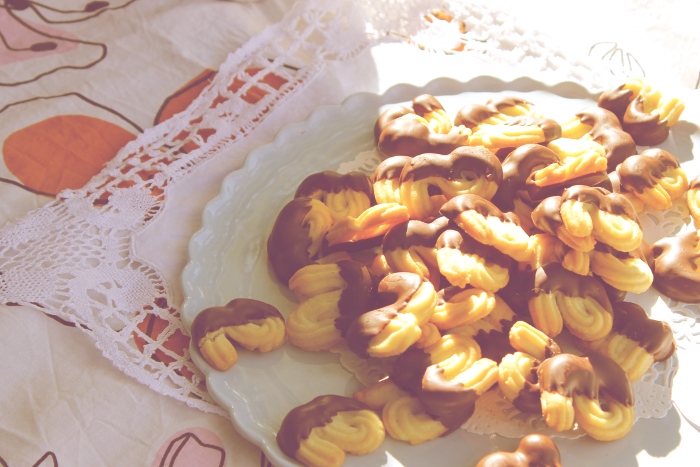 Toute la semaine dernière je n’ai fait que réfléchir à cette douceur du dimanche. J’avais plusieurs choix: sachertorte, apfelstrudel, bretzel … Sauf que j’ai préféré faire simple: des sablés viennois ! Enfin une recette accessible à tout le monde et prête en un rien de temps. Non, parce que la sachertorte ben c’est un peu long et puis comme nous n’avons pas eu le temps d’en goûter sur place (c’est à dire à l’Hôtel Sacher) j’ai préféré ne pas m’y coller sans avoir une quelconque comparaison en mémoire ;)