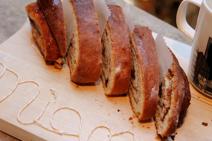 Une croûte ferme et un coeur fondant et moelleux aromatisé à la cannelle. Merveilleux avec un chocolat chaud ou bien accompagnant un thé bien chaud. Miam !
