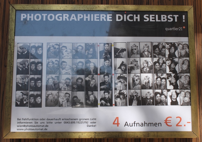 Donc si vous êtes de passage à Wien: go to MuseumsQuartier, go to le photoautomat ! Une pierre, deux coups; deux euros en moins mais un souvenir indélébile !